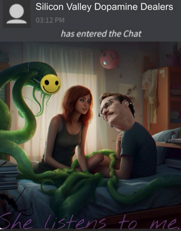 A lot of people will say goodbye to the real world, preferring the virtual world and “fake people” over the real world. Silicon Valley’s dopamine dealers will chain you to their LLMs.
