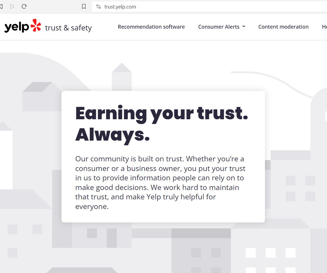 BillionDollarBully.com still redirects to Yelp, and Yelp did not respond to inquiries about the Google ad campaigns or why it hijacked Milliken’s website. BillionDollarBully.com no longer redirects to a Yelp page claiming Yelp doesn’t extort businesses, but rather to trust.yelp.com where Yelp claims it is “Always Earning Your Trust.”