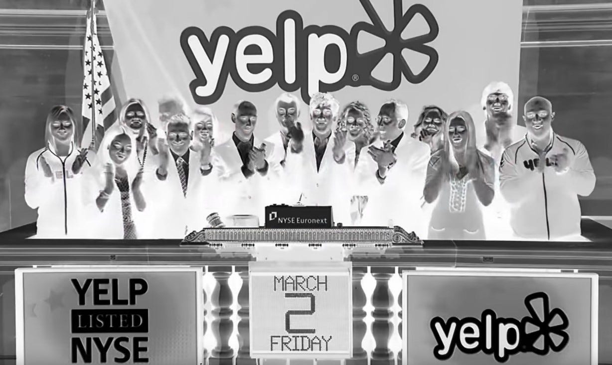 The documentary faced a high bar to make its case compellingly, not least because Yelp is a master at purveying half-truths and hiding in technicalities that obscure that their business model is based in part on extortion. Connecting the dots of all those technicalities is a struggle for the big screen, in the same way The Big Short tried, but did not always succeed, in making complex Wall Street financial instruments comprehensible to the average movie-goer.